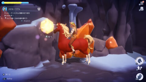 光り輝く洞窟内へ入り、岩場にあるクリスタルの鍵を拾って入手してください。