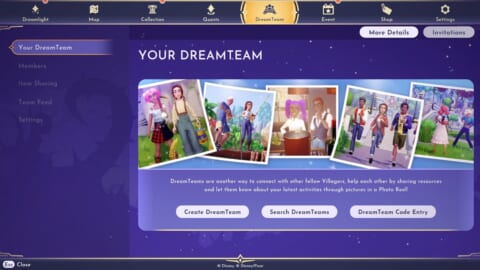 さらにウィンターボールアップデートでは、新たに「ドリームチーム」機能が追加されます。最大7人のフレンドとチームを組み、自分たちだけのディズニー・ドリームライト・バレーコミュニティを作ることが可能です。