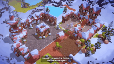 また、より手軽にデコレーションを楽しめるよう、「組み立てキット」のような新機能が追加されます。各バイオームに隠された設計図のピースを集めることで解放され、スクルージの雑貨店で購入できるようになります。