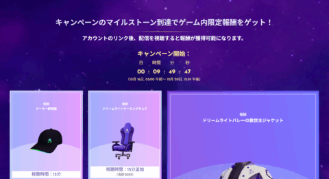 限定アイテムを入手するには、いくつかの条件があります。事前に内容を確認のうえ、Twitchでの視聴をお楽しみください。