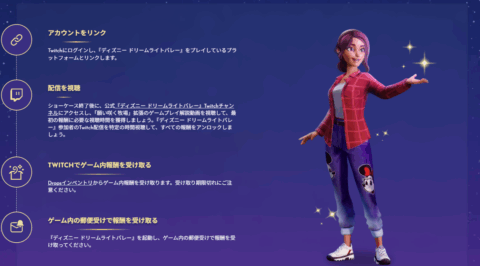 Twitchにログインし、『ディズニー ドリームライトバレー』をプレイしているプラットフォームとリンクします。アカウントを連携しておかないと、報酬を受け取れないので注意しましょう。 - 配信を視聴