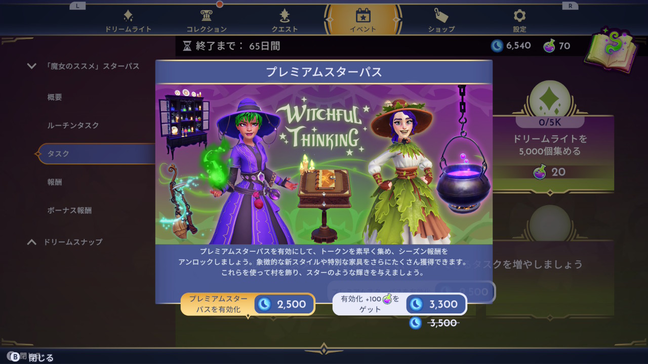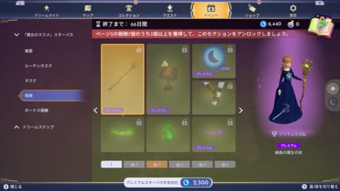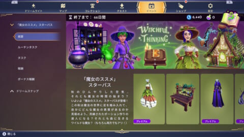ディズニードリームライトバレー』の「魔女のススメ」スターパスの限定アイテムの入手方法・報酬一覧や、開催されるイベントの詳細などを掲載しています。