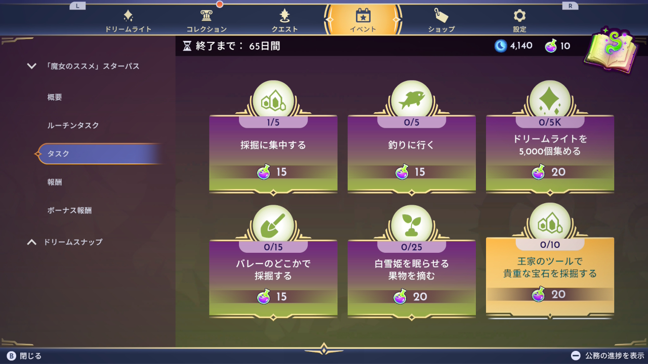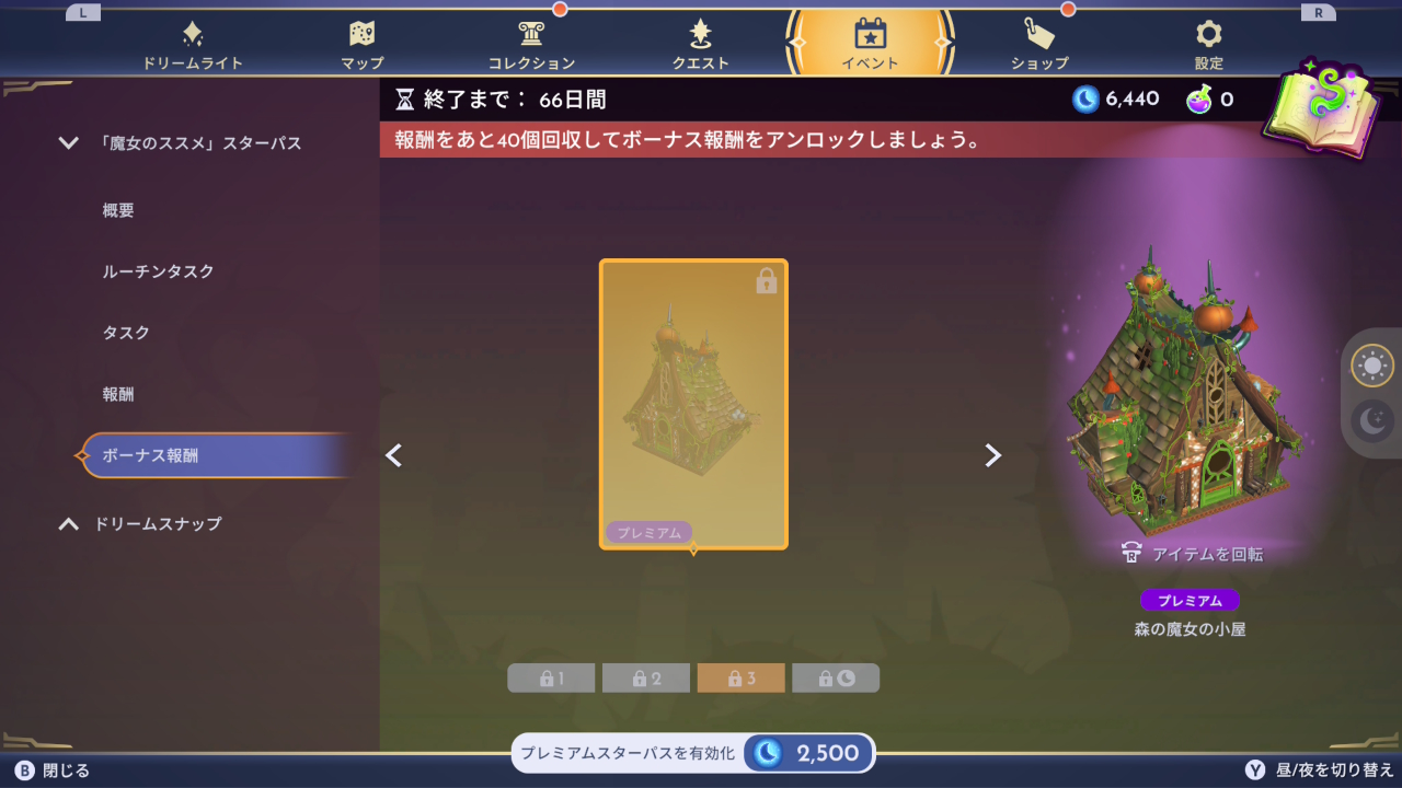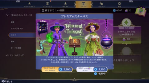 ムーンストーン2,500または3,300を使いプレミアムを解放すると、通常3個のタスクが6個表示されトークンを集めやすくなったり、交換できる限定アイテムが増えます。