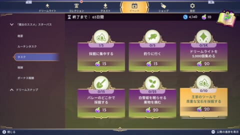 タスクをクリアしてトークンを集め限定アイテムを入手する