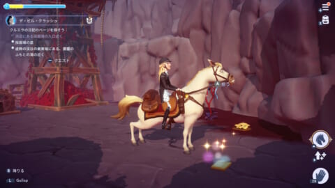 8. 採石場に落ちているメイクアップキットの匂いをマキシマスに嗅がせる(マキシマスに乗ったまま調べる)