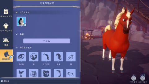 1. インベントリと同じ画面を開き「騎乗動物」を選択