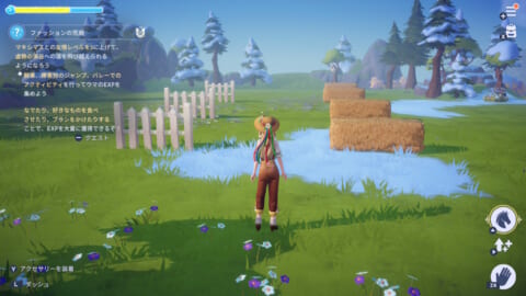 フェンスを持っていない場合でも、願い咲く牧場にある干し草を「家具モード」で集めて並べれば代用できます。