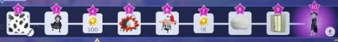 - クルエラの装飾付きダービーハット×1か、サリ―のナイトメアの魔女の帽子×1を被り、それに合う服装に着替える