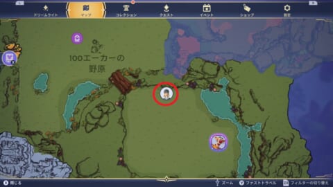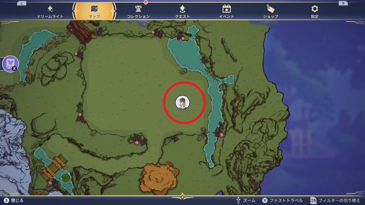 8. 妖精の池で、スズラン(イエロー)×2、スズラン(ブルー)×2、スズラン(ピンク)×2、ボンサイスターフルーツ×2を集める
