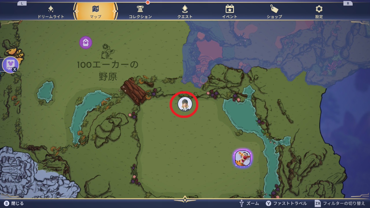 2. サンデーショアの水辺まで行き、ティガーと赤い風船を探す