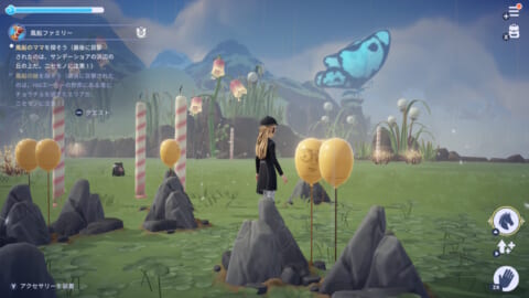 サンデーショアの浜辺の丘の上にいるので、ツルハシで岩を壊してください。丸みのあるメガネをした風船が本物です。