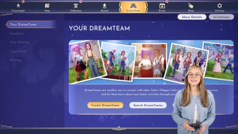 今回のアップデートで、新たに「ドリームチーム」機能が追加されます。最大7人のフレンドとチームを組み、自分たちだけのディズニー・ドリームライト・バレーコミュニティを作ることができます。