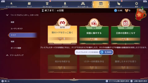 また、プレミアム限定の報酬が解放されるほか、任務や報酬を自動で受け取れる「タスクの自動クリア」「報酬の自動回収」機能も利用できます。