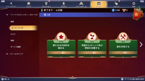 イベント用のタスクを達成して限定アイテムを入手する |