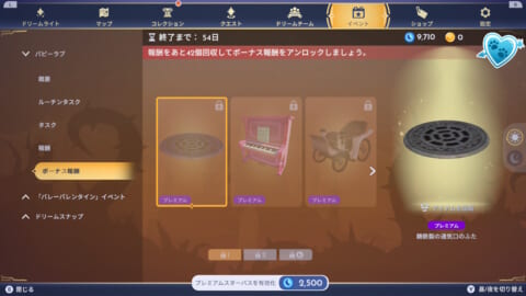 ボーナス報酬は、通常の報酬を全て交換すると解放されます。通常報酬の色違い家具や衣装、自宅の外観スキンが報酬として交換できることが多いです。