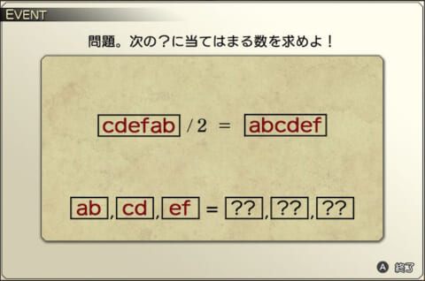 数値問題とは、ダンジョンエンカウンターズの中で特定のイベント番号を踏むと発生します。正解した時にもらえるアイテムはゲーム内で確認できます。