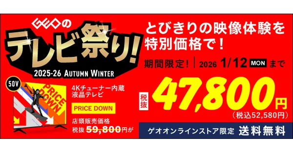 ゲオテレビ祭り開催!特別価格&送料無料が2026年1月12日まで