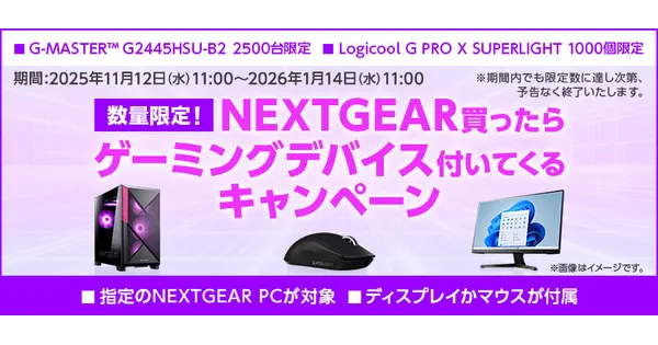 マウス NEXTGEAR買うとゲーミングモニターかマウスが無料!限定特典の詳細と対象PCまとめ