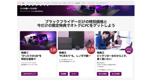 【レノボ】ブラックフライデー2025年12月4日まで開催!ThinkPadやYoGaProなど特別価格に