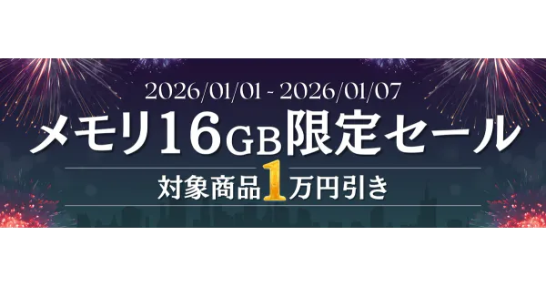 【MDL.make】初売りメモリ16GB限定セール!ゲーミングPCが全品1万円OFF