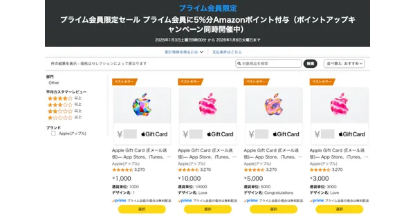 【Amazon】Appleギフトカード5%還元キャンペーンを開始!対象者や二重取りの可否など注意点