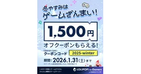 「ロリポップ! for Gamers」は、期間限定で新規ゲームサーバー契約を対象としたホリデーキャンペーンを実施します。本キャンペーンでは、全プランで利用可能な1,500円OFFクーポンを提供し、お得にマルチプレイ環境を構築できる機会となります。