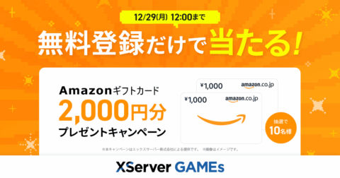 「Xserver GAMEs」では、2025年12月8日より無料サーバーまたは有料サーバーの契約者を対象に、Amazonギフトカード2,000円分が抽選で当たるプレゼントキャンペーンを実施します。本記事では、このキャンペーンの概要や応募方法を詳しくご紹介しますので、ぜひ参考にしてください。