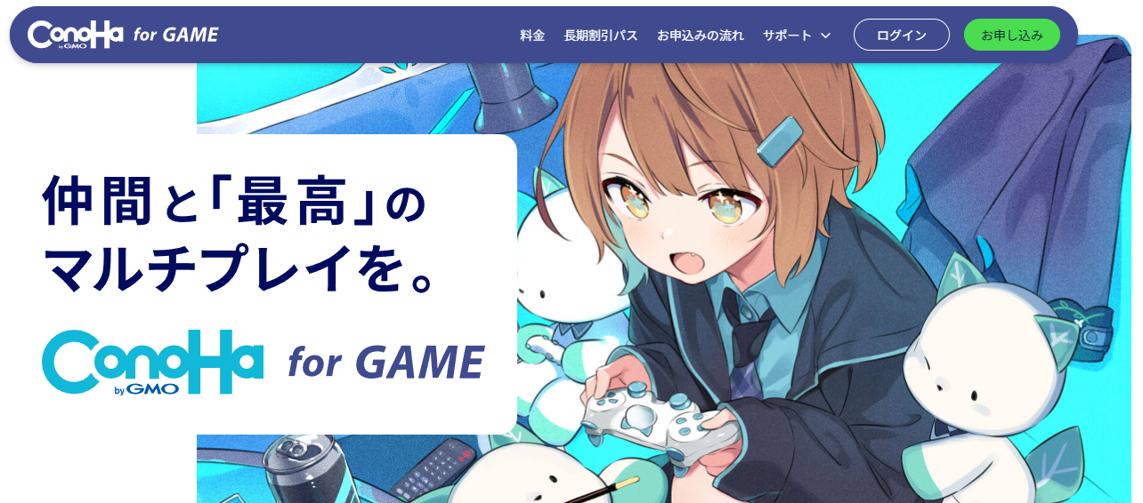 「conoHa for GAME」は、ホスティングサービスを提供する ConoHa(運営:GMOインターネット株式会社)が提供する、マルチプレイゲーム専用のサーバーレンタルサービスです。