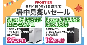 【FRONTIER】人気スペックのゲーミングPCがお得になる「暑中見舞いセール」が開催中
