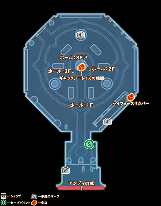 ホール:3F / 天井裏 (1Fで緑のレールに乗ると行ける) |