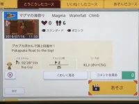 【コース名】マグマの滝登り 【コースID】KLJ-J8V-C5G 【ゲームスキン】ワールド 【シーンスキン】城 【むずかしさ】普通〜微難 【タグ】スタンダード、ギミック 【コメント】プカプカ浮かんで頂上目指せ!