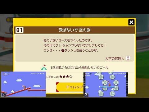 敵のいないコースをつくったのです。 その代わり!ジャンプしないでクリアしてね! コツは…Yダッシュを使うことかな。 大空の管理人ステージ情報