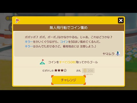 ポッ。ポッポポ?ポッポー。(マントの使い方が上手なキミにお題があるぞ。 B長押しでゆっくり降りながら、最後まで足をつけずにゴールできるかな? つるにつかまったり敵をふむのは、着地じゃないからだいじょうぶだぞ。) ヤマムラ