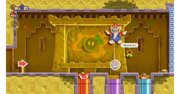 - 【マリオワンダー】「ここはどこ?赤青迷宮」の10フラワーコインの場所| ワールド4 ヒデリー砂漠