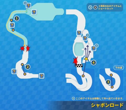 マリオカート8DXのコース「シャボンロード」のコース詳細情報やショートカットのポイントを以下で解説しています。