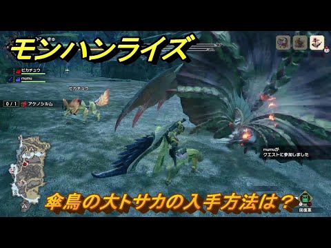 『モンスターハンターライズ』に登場するアイテム「傘鳥の大トサカ」の攻略情報を以下で解説しています。