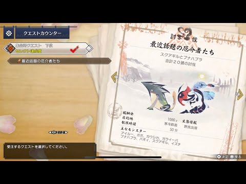 集会所下位 ★1 | 討伐 スクアギルとブナハブラ合計20頭の討伐 |