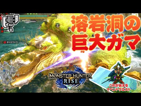 『モンスターハンターライズ』に登場するクエスト「溶岩洞の巨大ガマ」の攻略情報を以下で解説しています。