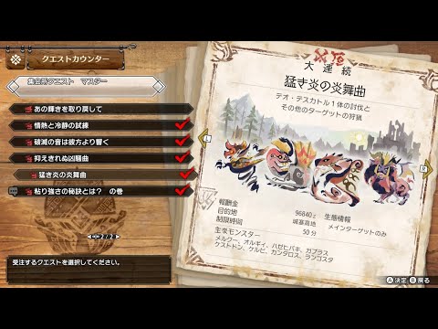 『モンスターハンターライズ』に登場するクエスト「猛き炎の炎舞曲」の攻略情報を以下で解説しています。