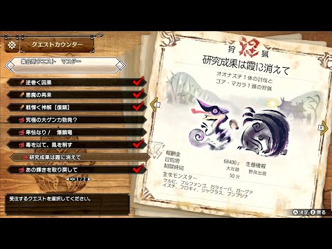 集会所MR ★6 | 狩猟 オオナズチ 1体の討伐とゴア・マガラ 1頭の狩猟 |