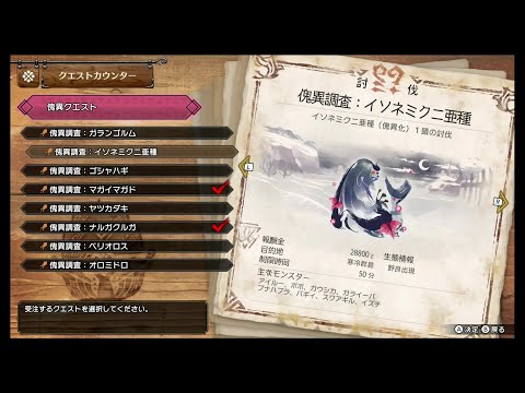 | 傀異調査 ★6 | 討伐 イソネミクニ亜種 (傀異化)1頭の討伐 |
