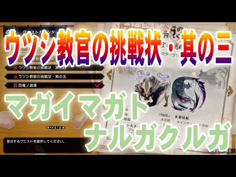 『モンスターハンターライズ』に登場するクエスト「ウツシ教官の挑戦状・其の三」の攻略情報を以下で解説しています。