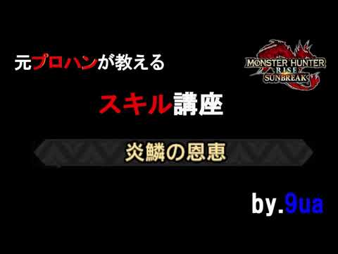 『モンスターハンターライズ』に登場する「炎鱗の恩恵」のスキル効果やスキルが発動する防具・装飾品などの攻略情報を解説しています。