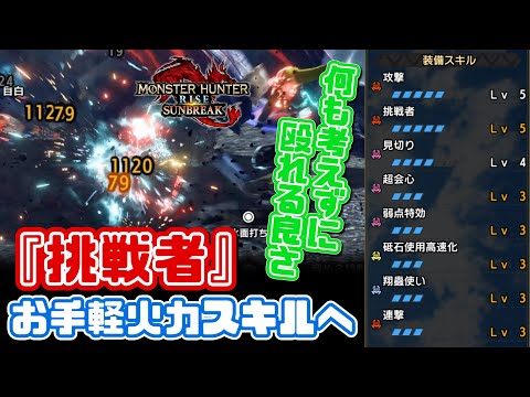 『モンスターハンターライズ』に登場する「挑戦者」のスキル効果やスキルが発動する防具・装飾品などの攻略情報を解説しています。