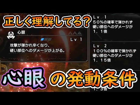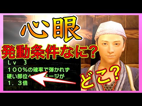 『モンスターハンターライズ』に登場する「心眼」のスキル効果やスキルが発動する防具・装飾品などの攻略情報を解説しています。