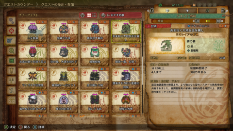 まずは緋の森のいずれかのフリークエストを受注しましょう。