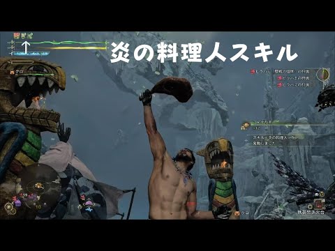 『モンスターハンターワイルズ』に登場する「炎の料理人」のスキル効果やスキルが発動する防具・装飾品などの攻略情報を解説しています。