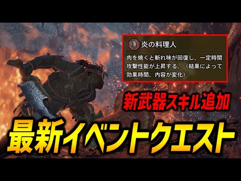 『モンスターハンターワイルズ』に登場する「炎の料理人」のスキル効果やスキルが発動する防具・装飾品などの攻略情報を解説しています。