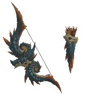 | 解説 | ラギアクルスのしなやかな素材を生かした狩猟弓。渦巻く弓腹が矢の推力を乗算させる。 |