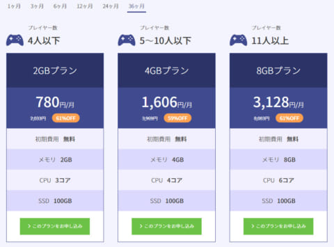 パスの有効期間が長ければ長いほど割引率がアップし、よりおトクにConoHa for GAMEをご利用いただけます。